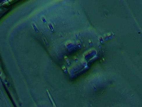 Также наблюдаются объекты в виде люминесцентно светящихся точек и кристаллов.